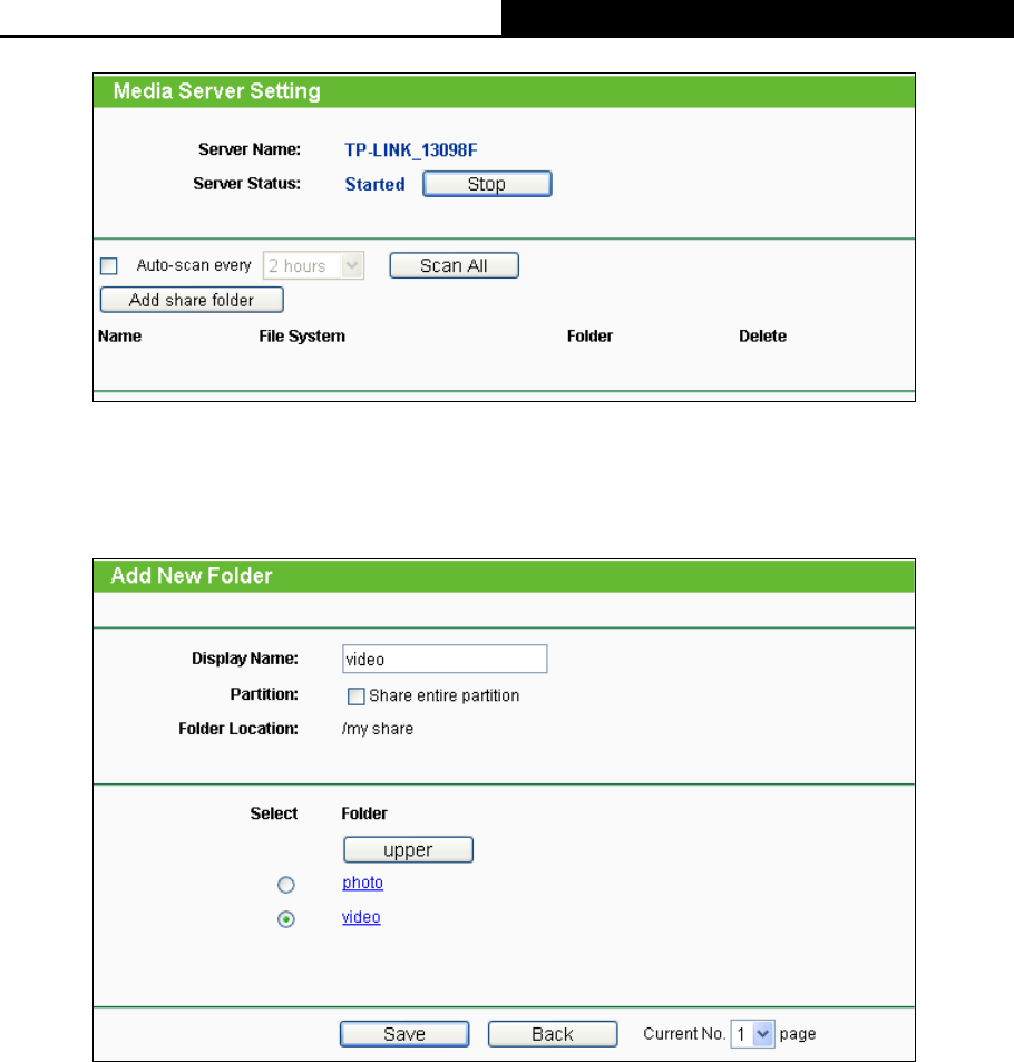 3. Click the Add share folder button to specify a folder as the search path of media server. The