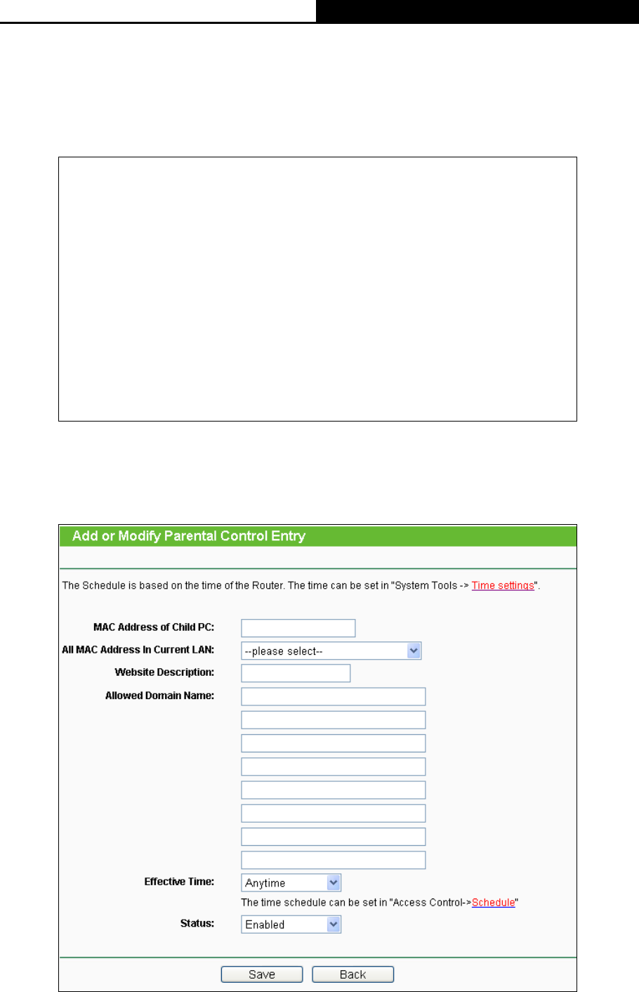 as shown in Figure 4-77. The Parental Control function can be used to control the internet