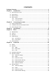 CONTENTS Package Contents.....................................................................................................1 Chapter 1. Introduction.........................................................................................2 1.1 Overview of the router ................................................................................................ 2 1.2 Conventions ............................................................................................................... 2 1.
