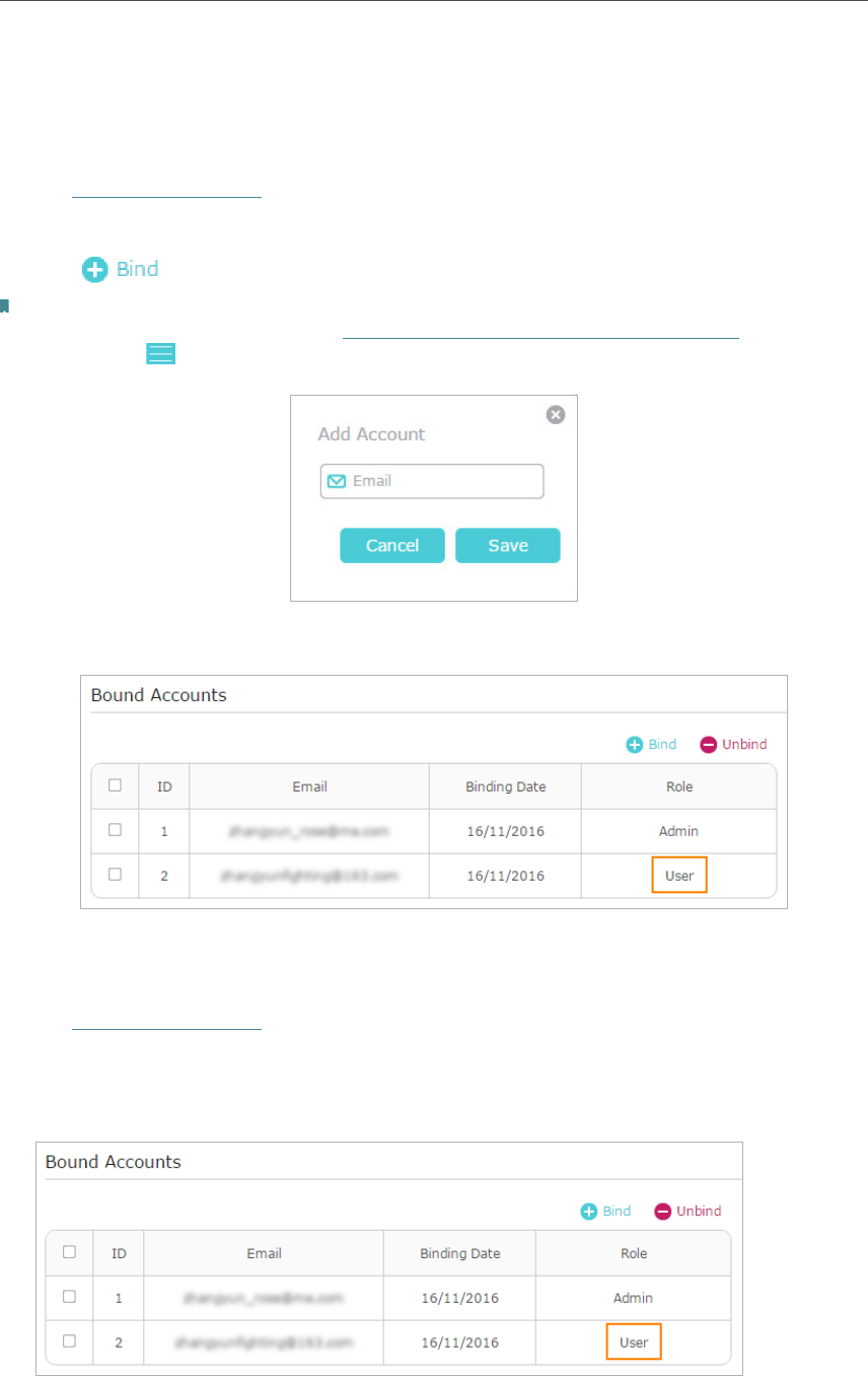 4. The new TP-Link ID will be displayed in the Bound Accounts table as a User.