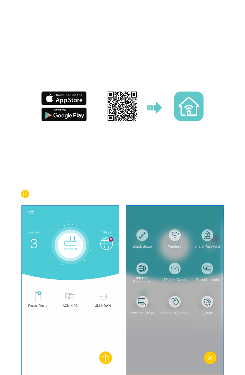 Open the Apple App Store or Google Play and search the key word “TP-Link Tether” or