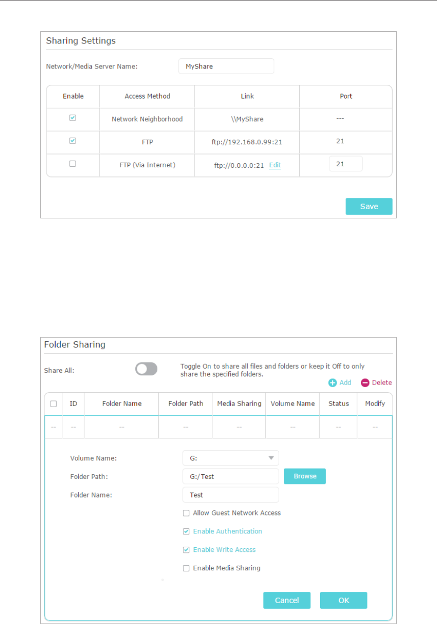 Add to add a new sharing folder.