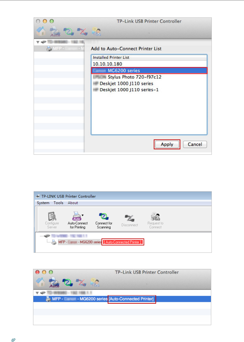 5 ) You will see the printer marked as Auto-Connect Printer. Now you can print with