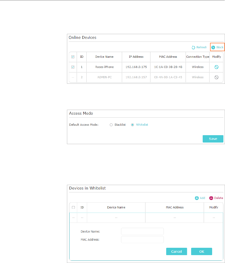 2 ) Click Add in the Devices in Whitelist section. Enter the