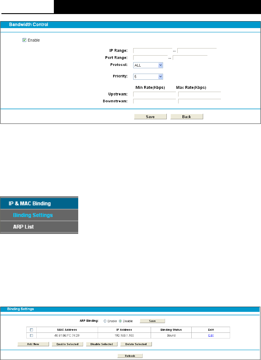 This page displays the IP & MAC Binding Setting table; you can operate it in accord with your