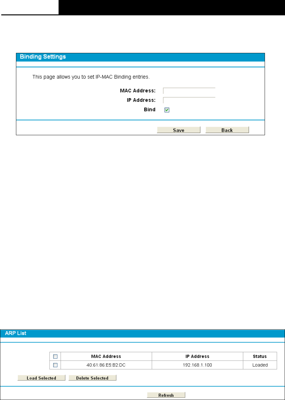 Click the Load Selected button to load selected items to the IP & MAC Binding list.