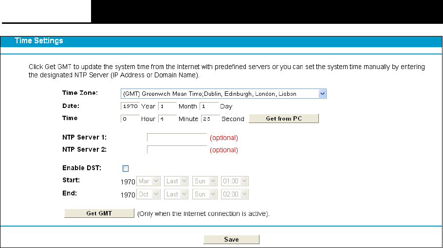 3. Click the Get GMT button to get system time from Internet if you have connected to the