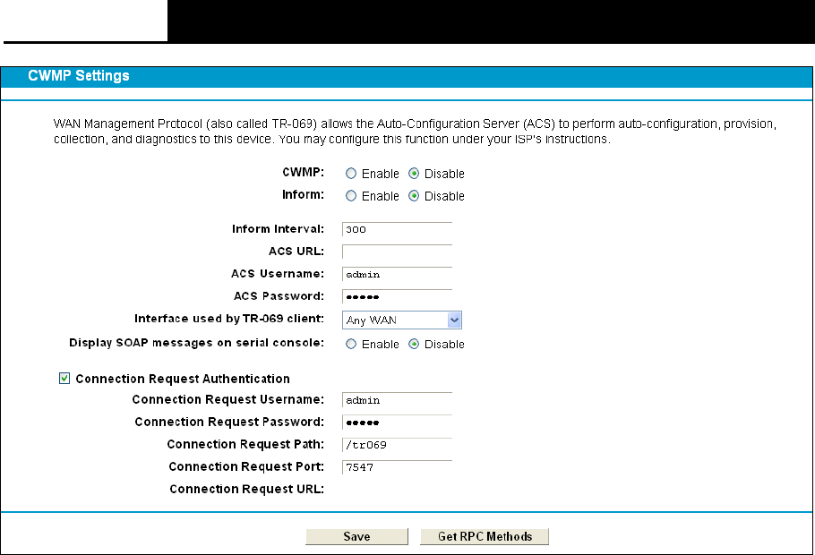 Inform: If enabled, the information will be informed to ACS server periodically.