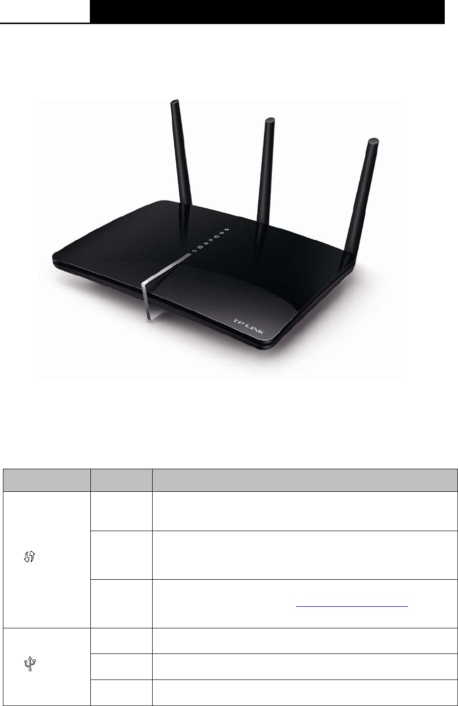 The modem router’s LEDs are located on the top panel (View from top to bottom). They indicate