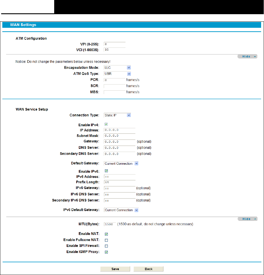 ATM Qos Type: Select ATM Qos Type provided by your ISP. The default type is UBR.