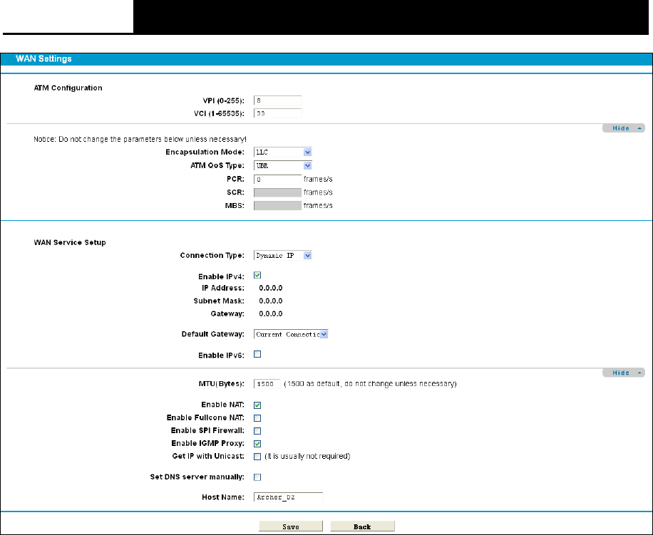 Click Advance, advanced selections for WAN Service Setup can be shown.
