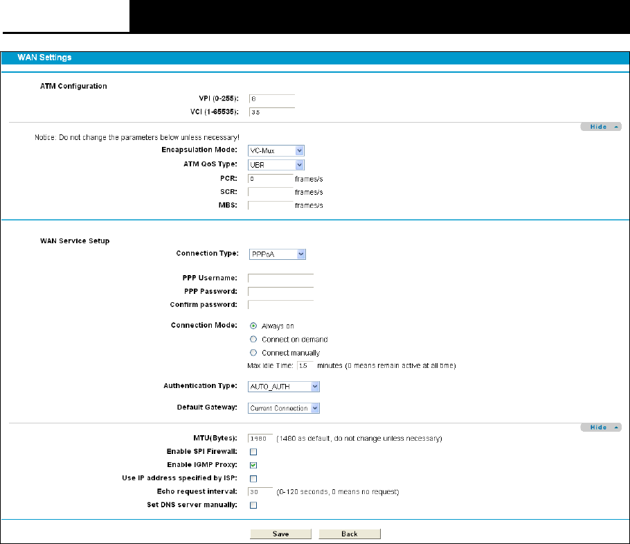 If your ISP provides an IPoA connection, select IPoA option for the Connection Type on the
