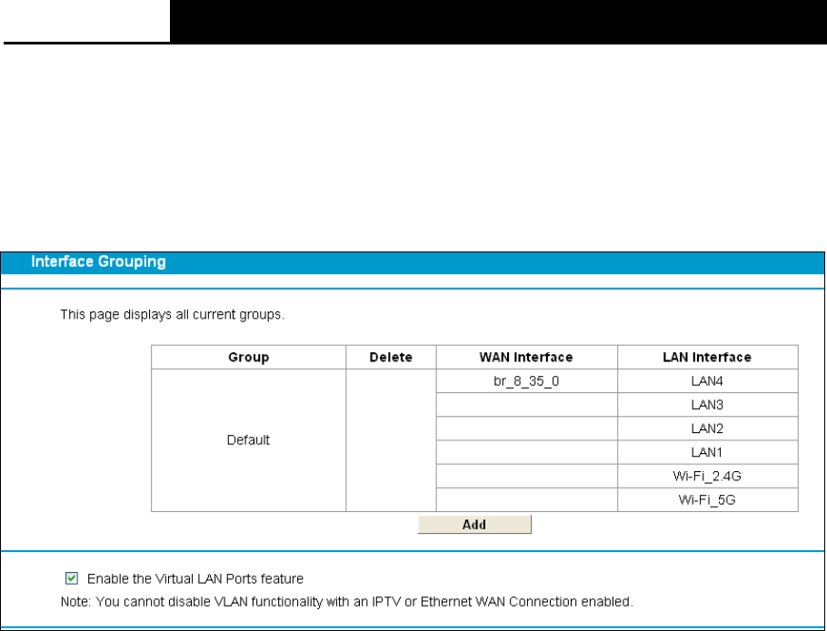 want to active the Interface Grouping function, please check the box to enable the Virtual LAN