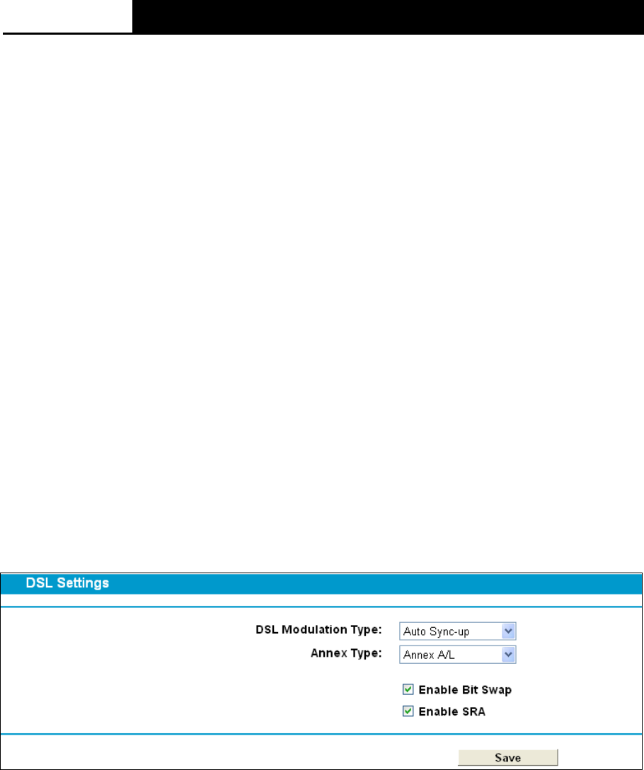 Choose “Advanced Setup”“DSL Settings”, you can select the DSL Modulation Type and the