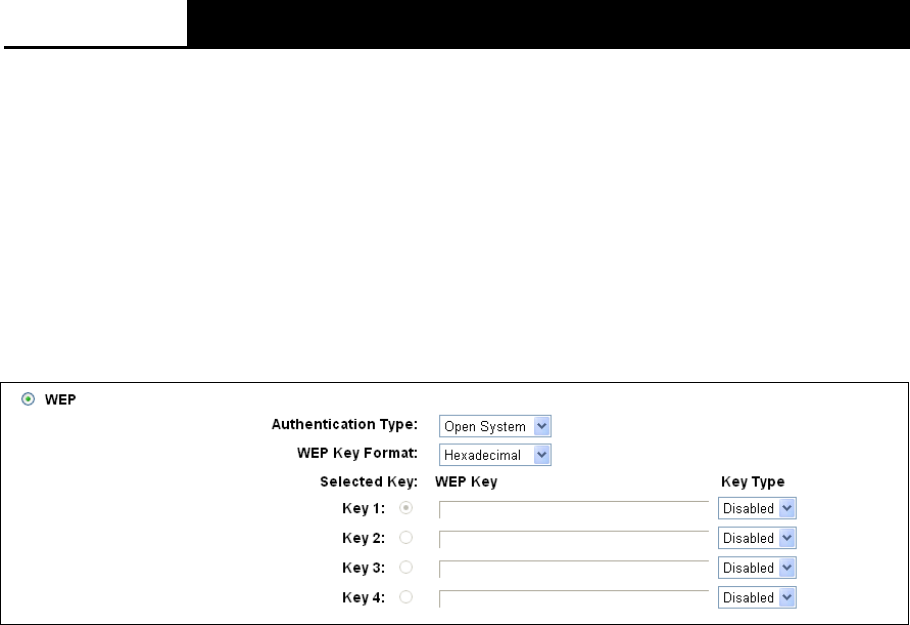 • Authentication Type: You can choose the type for the WEP security from the drop-down