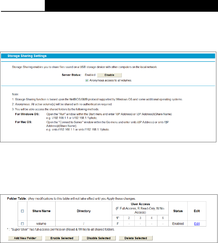 can access to all activated volumes without authentication. If you want to add a shared folder