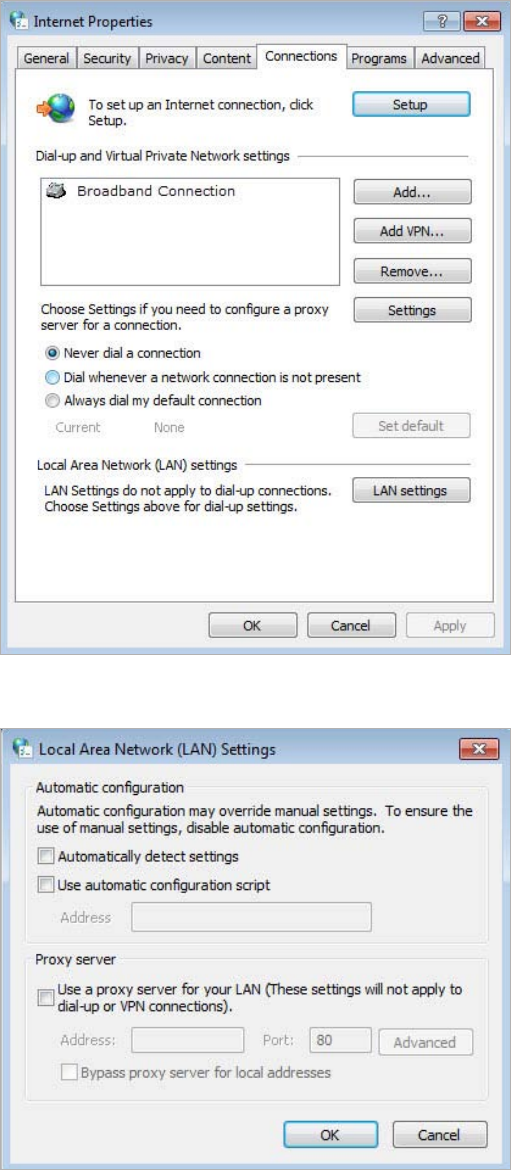 4 ) Click LAN settings, deselect the following three options and click OK;
