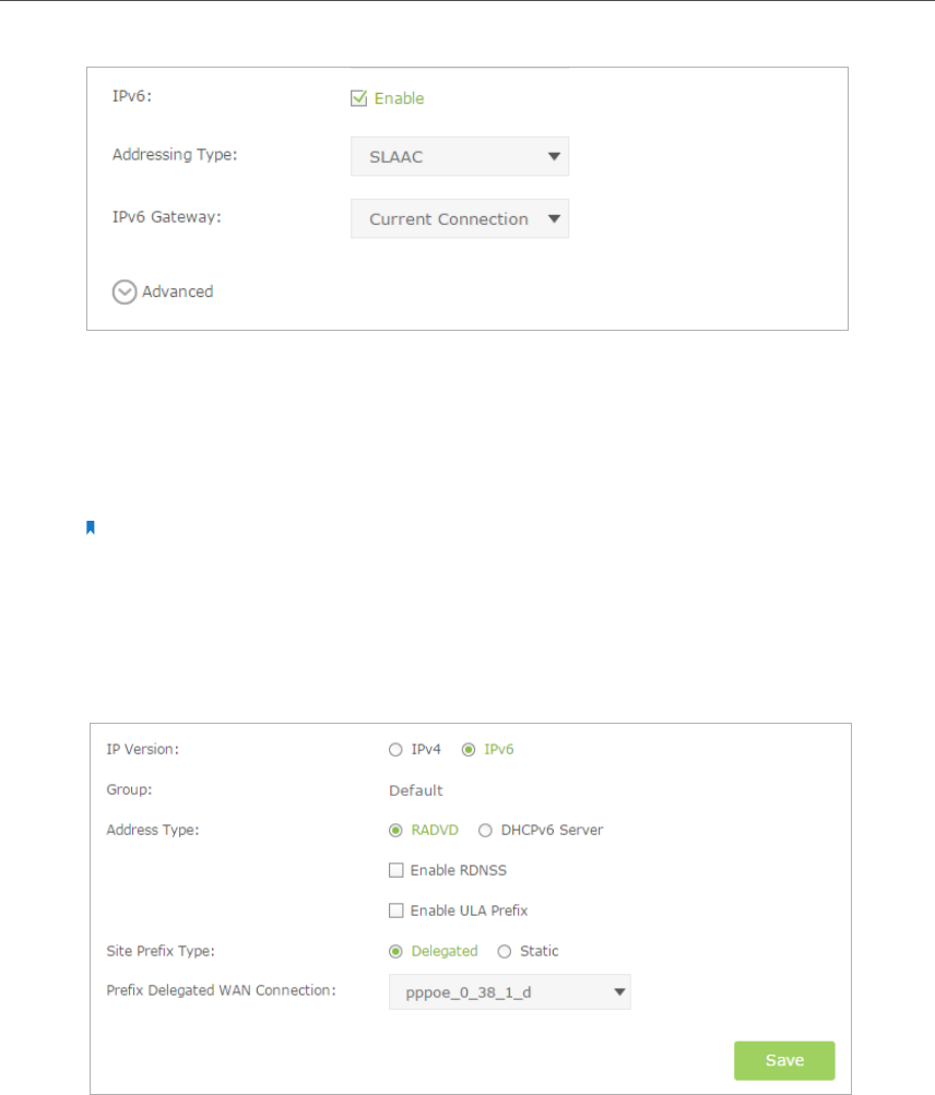 Note: If your ISP has provided the IPv6 address, click Advanced to reveal more settings. Check to use
