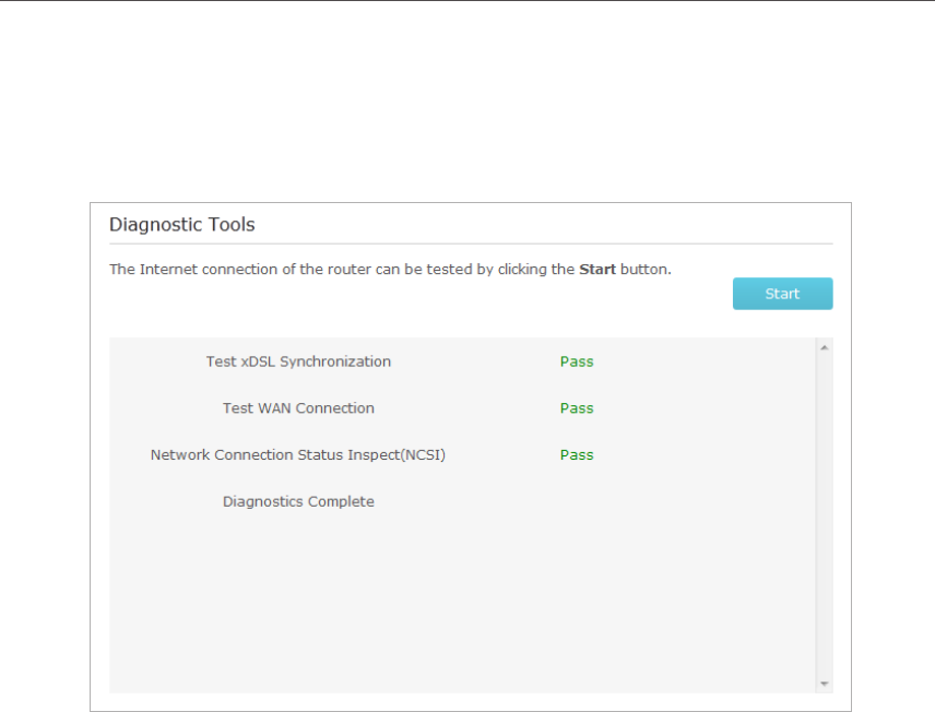 3. Click Start to test the Internet connectivity and you will see the test result in the