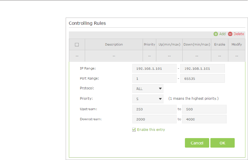 5 ) Upstream/Downstream: Enter the bandwidth according