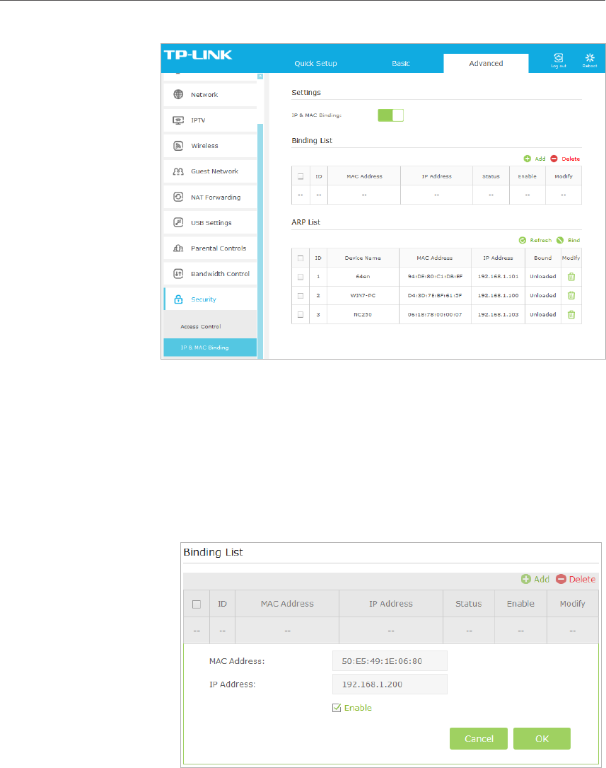 1 ) Select the device(s) to be bound in the ARP List.