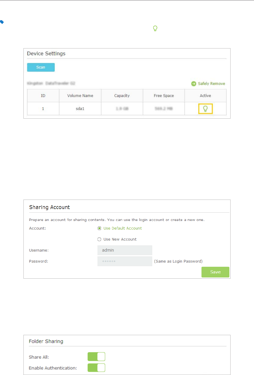 The modem router can share eight volumes at most. You can click on the page to detach the corresponding