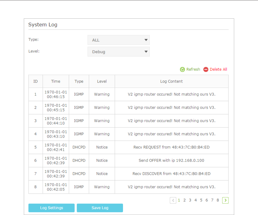 1. Select the log Type. Select ALL to view all kinds of logs, or select DHCPD or IGMP to