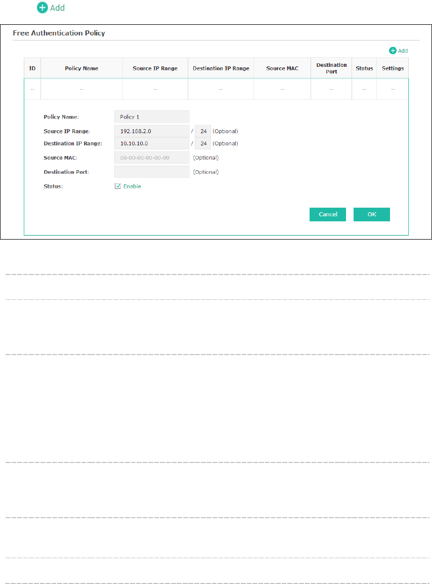 Source MAC: Enter the source MAC address of the clients who can enjoy the free