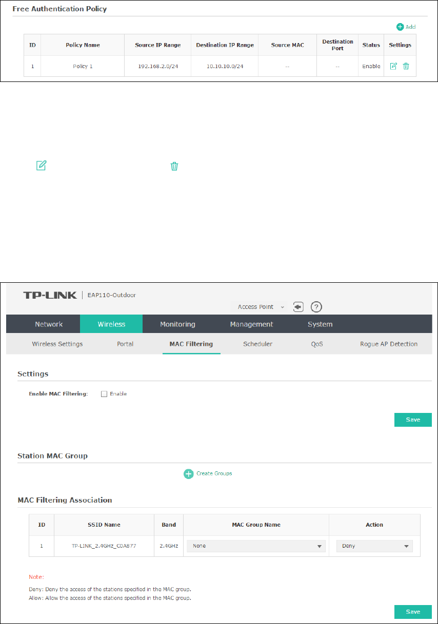 Figure 5-18 MAC Filtering Page