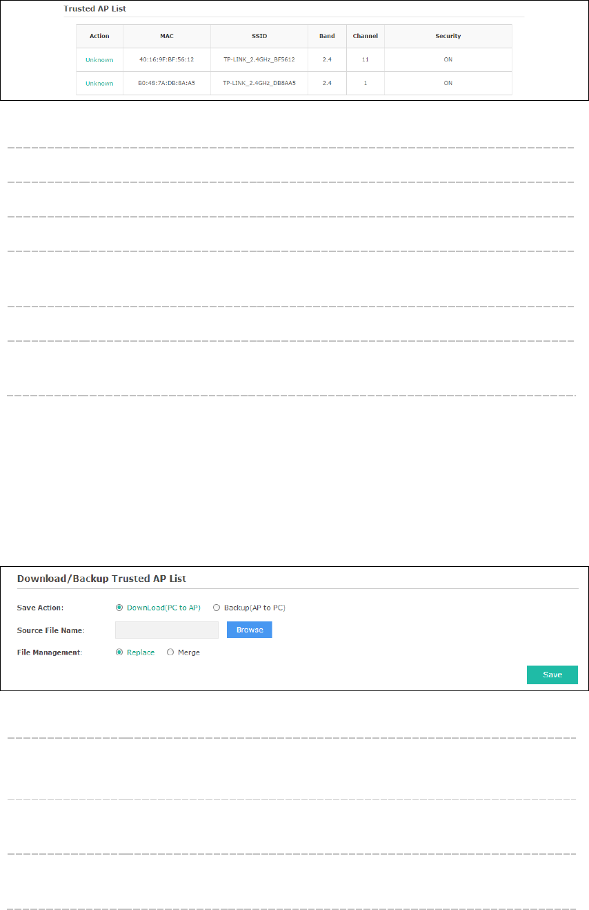 Save Action: Select Download (PC to AP) to import a trusted AP list to the device.