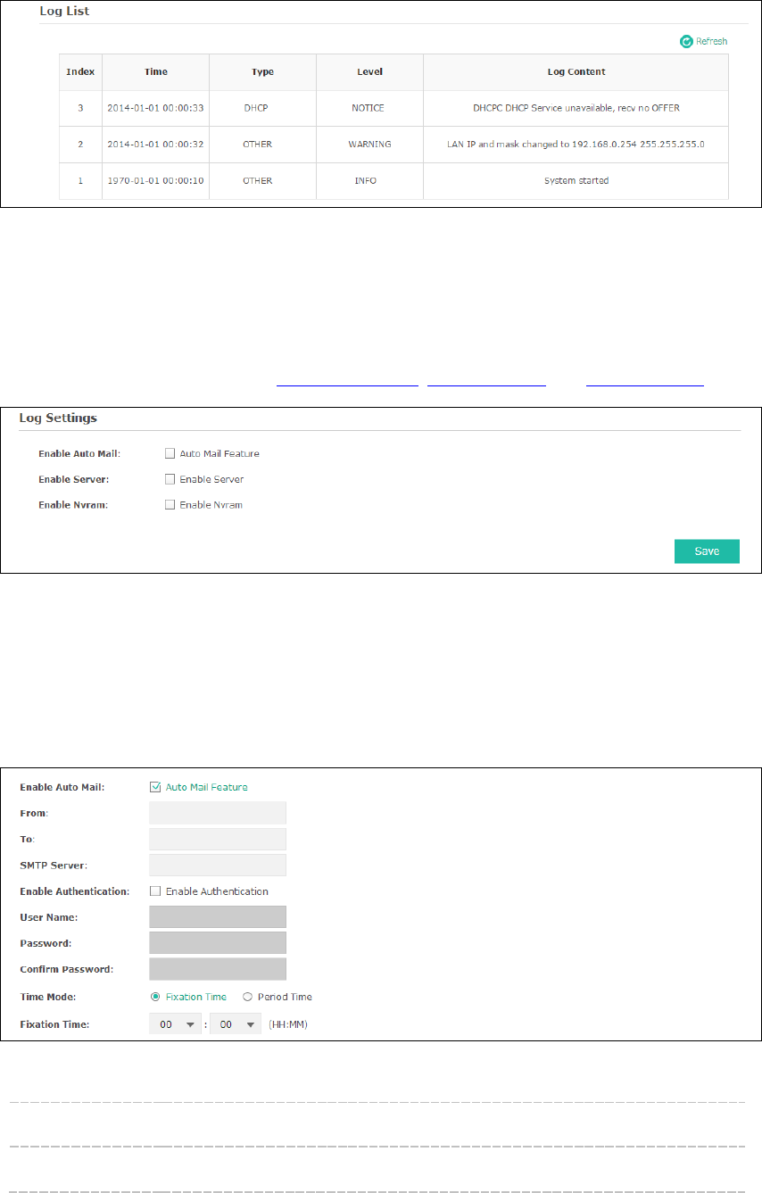 If Auto Mail Feature is enabled, system logs will be sent to a mailbox. The following