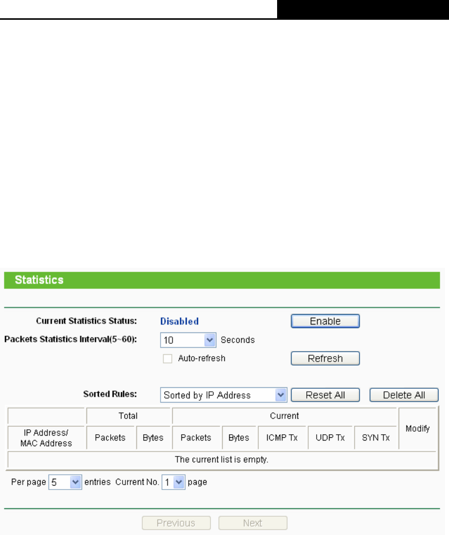 Choose menu “System Tools → Statistics”, you can view the statistics of the Router,