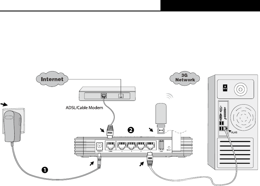 Figure 2-1 Hardware Installation of the 3G/3.75G Wireless Lite N Router