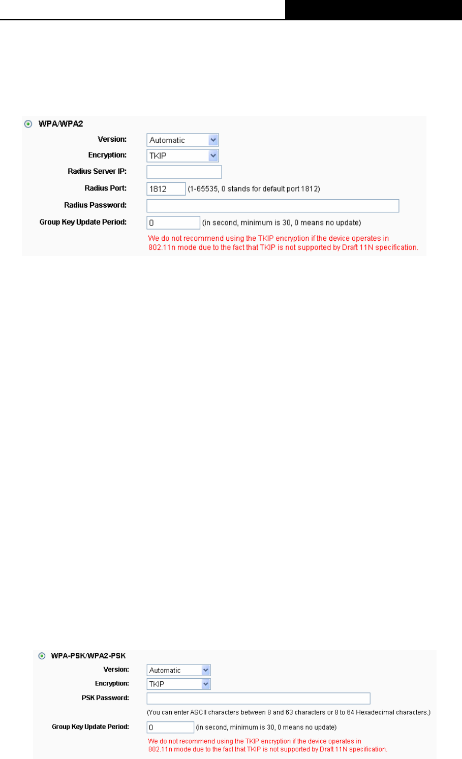 If you check the WPA-PSK/WPA2-PSK radio button and choose TKIP encryption, you