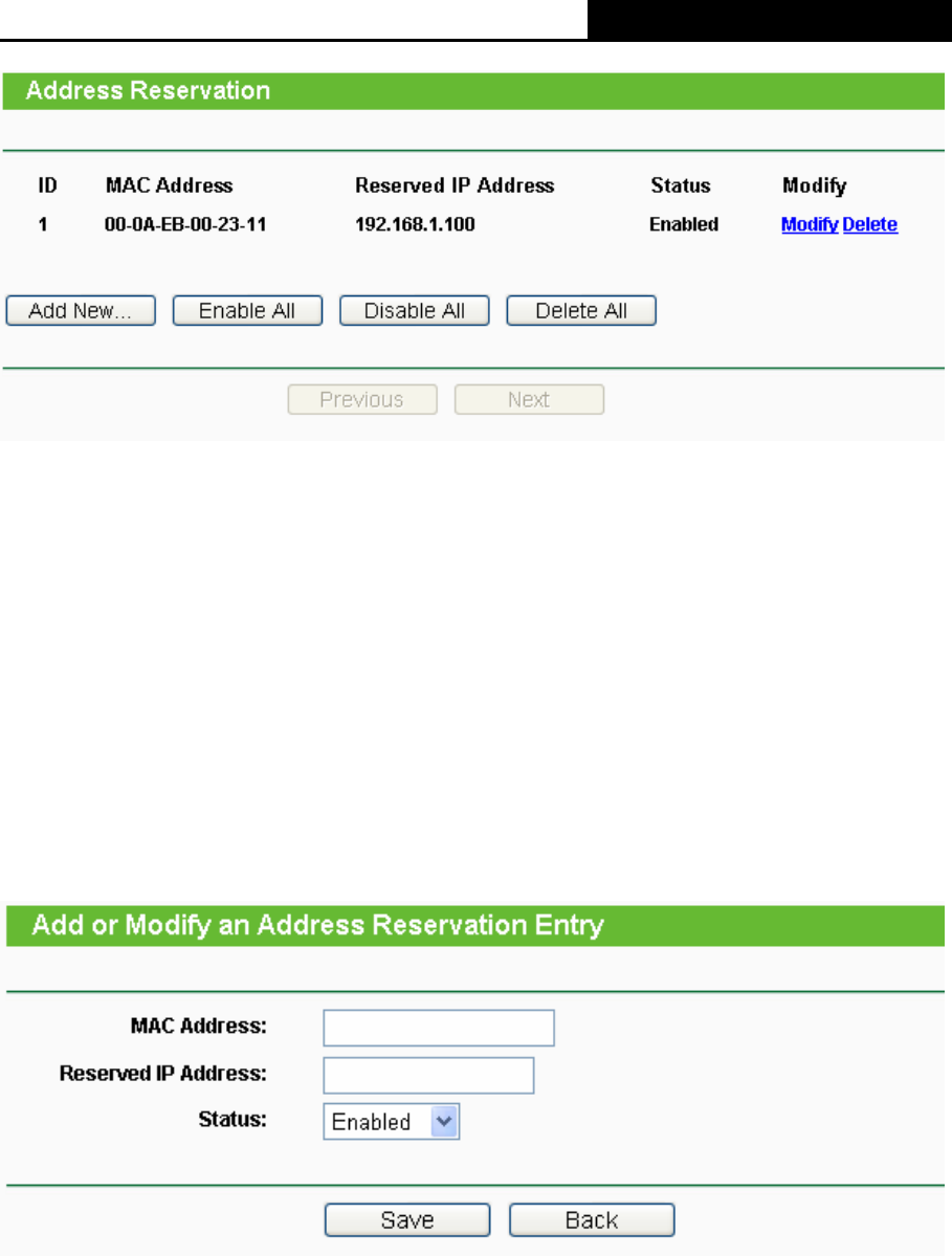 ¾ MAC Address - The MAC address of the PC for which you want to reserve IP address.