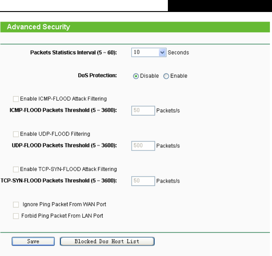 ¾ DoS Protection - Denial of Service protection. Check the Enable or Disable button to