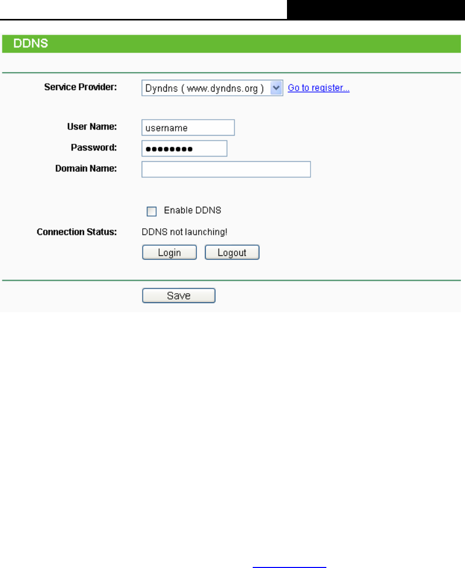 3. Type the Domain Name you received from dynamic DNS service provider here.