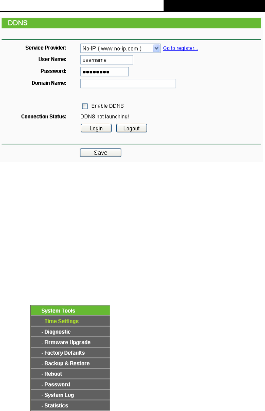 Connection Status - The status of the DDNS service connection is displayed here.