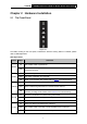The LEDs, locating on the front panel, indicates the device’s working status. For details, please