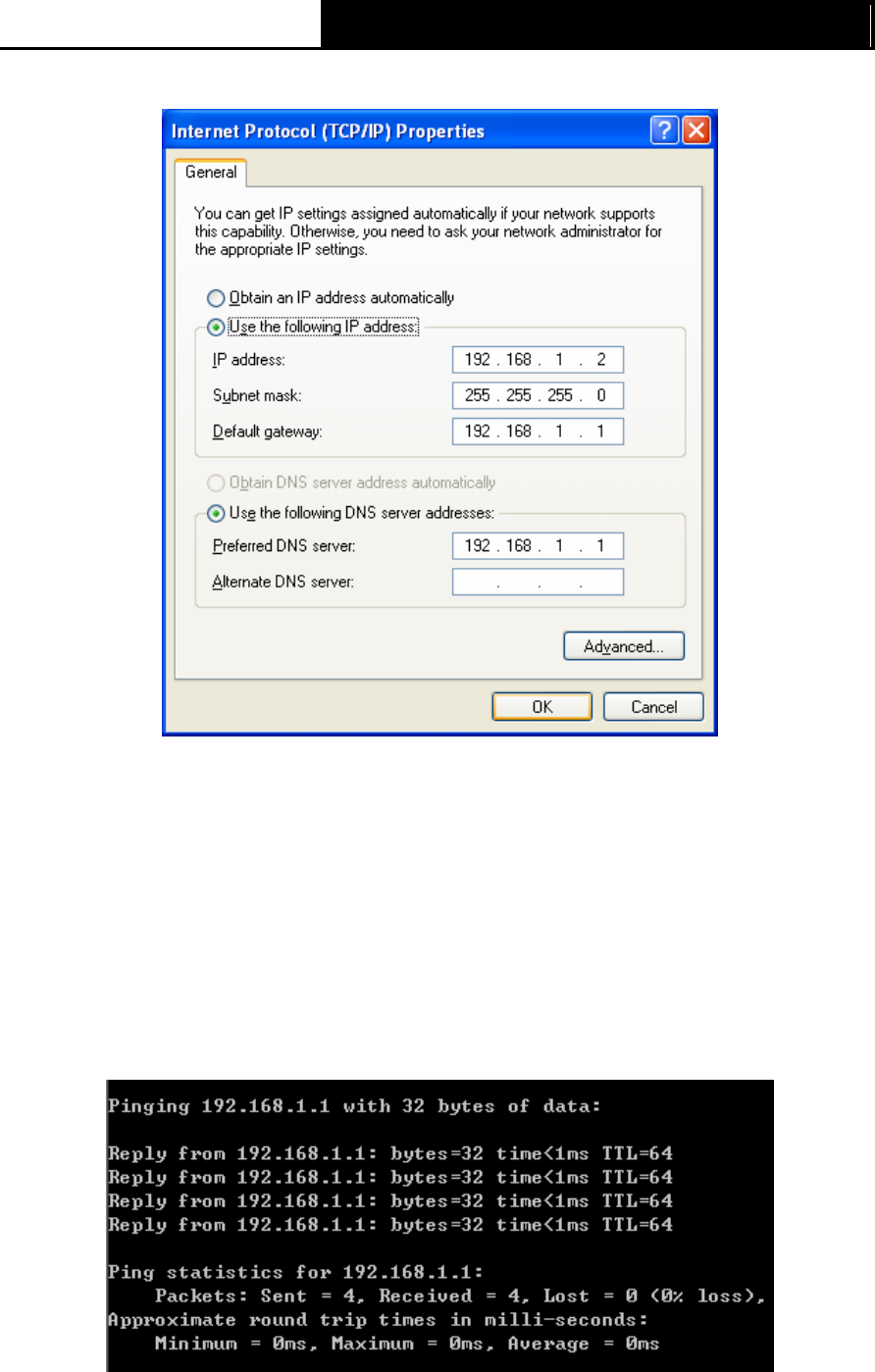 and press Enter. Type ping 192.168.1.1 on the next screen, and then press Enter.