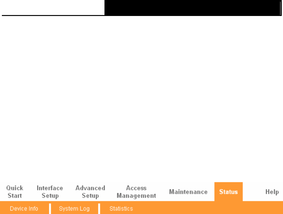 Choose “Status”, you can see the next submenus: Device Info, System Log and Statistics.