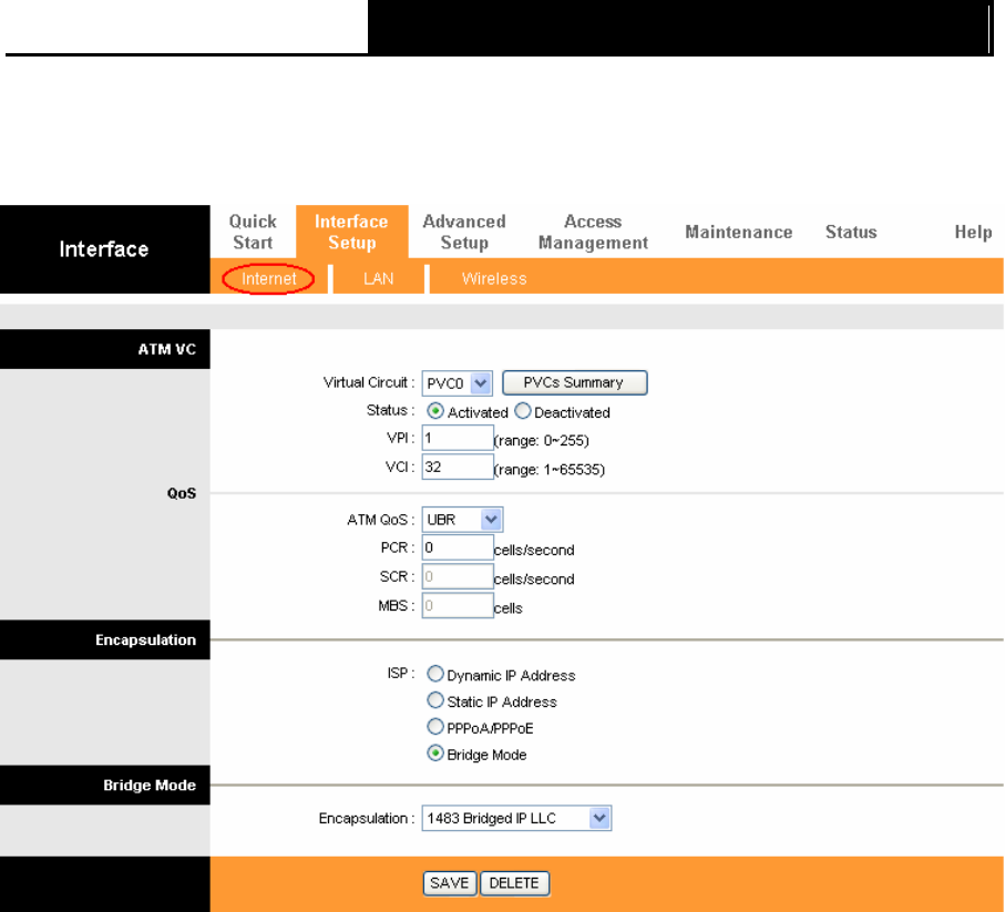 • Virtual Circuit: Select the VC number you want to setup, PVC0~PVC7.