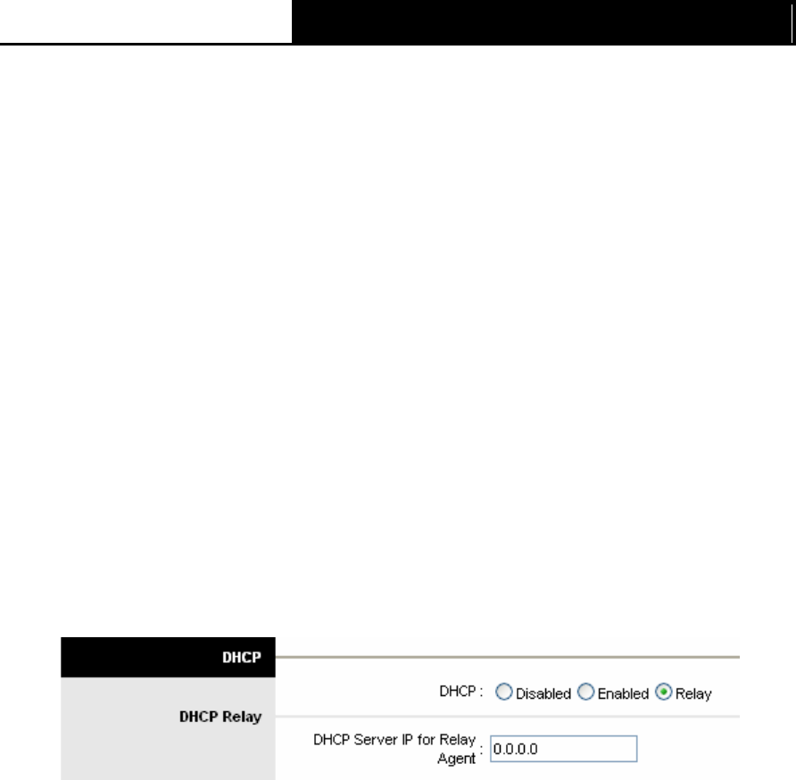 ¾ DHCP Relay: Select Relay, then you will see the next screen (shown in Figure 4-11), and the