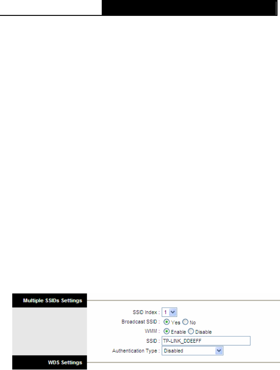 • SSID Index: The index of the SSID, and in this model, you can only leave it as a default