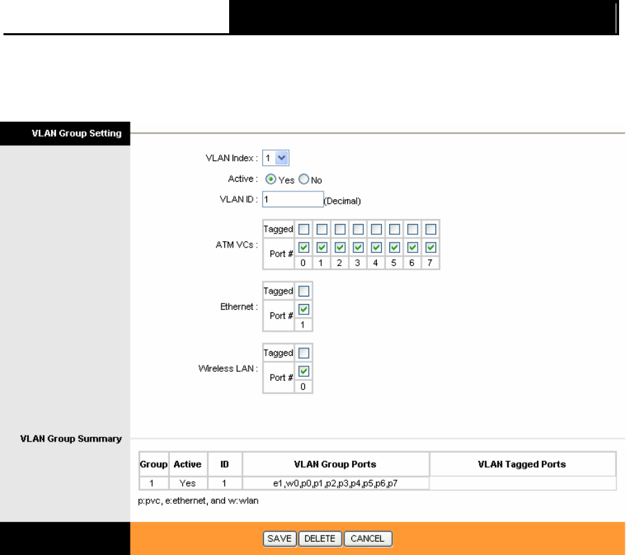 ¾ VLAN Index: Select the VLAN index for this VC. You can specify 8 groups in maximum.