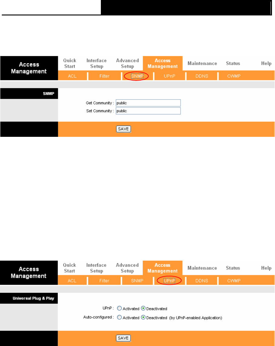 Choose “Access Management→SNMP”, you can see the SNMP screen. The Simple Network