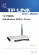 TD-W8900G 54M Wireless ADSL2+ Router User Guide CONTENTS Chapter 1. About This User Guide.......................................................................... 1 1.1 Purpose..................................................................................................................... 1 1.2 Conventions .............................................................................................................. 1 1.3 Overview of this User Guide ................................................