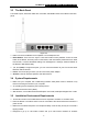 The LED indicators on the front panel include the Power, System, ADSL, WLAN and 1-4 (LAN).
