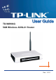 TD-W8901G 54M Wireless ADSL2+ Router User Guide Chapter 1 Introduction 1.1 Product Overview Thank you for choosing the TD-W8901G 54M Wireless ADSL2+ Router. The device is designed to provide a simple and cost-effective ADSL Internet connection for a private Ethernet or 802.11g/802.11b wireless network. The TD-W8901G connects to an Ethernet LAN or computers via standard Ethernet ports. The ADSL connection is made using ordinary telephone line with standard connectors.