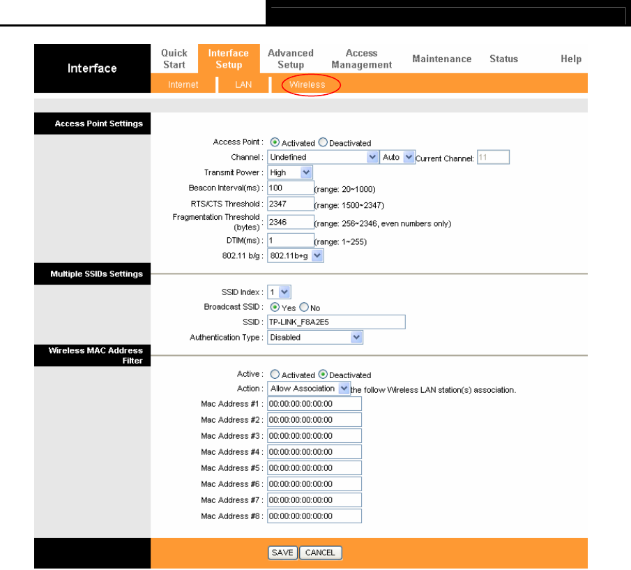 ¾ Access point Settings: These are the settings of the access point. You can configure the